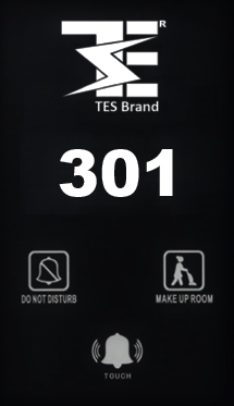 Digital Door Plate by TES Brand with the features of Hotel Logo, Room No., DND, Make my Room, Check-in & Touch Bell Suitable for Hotel Room Doors. It Enhances is Luxury of Hotel.
